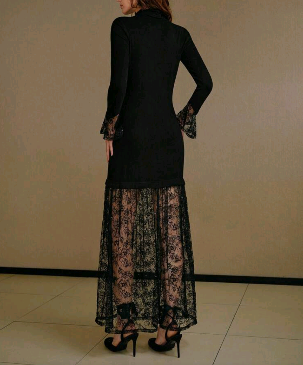 This elegant slim dress had a beautiful Italian Lace fishtail with touches of sequins intertwined within.
